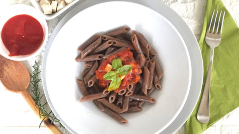 Penne al TEFF con Amatriciana vegetale (base tofu e paprika)